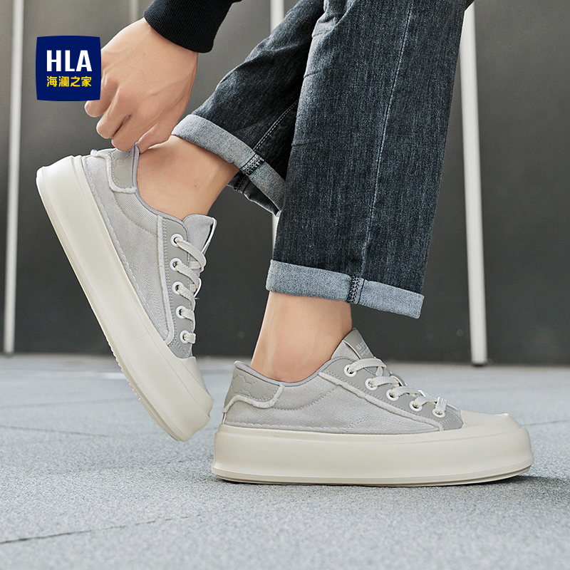 HLA/海澜之家男鞋新款夏季潮流低帮帆布鞋时尚百搭透气休闲鞋增高