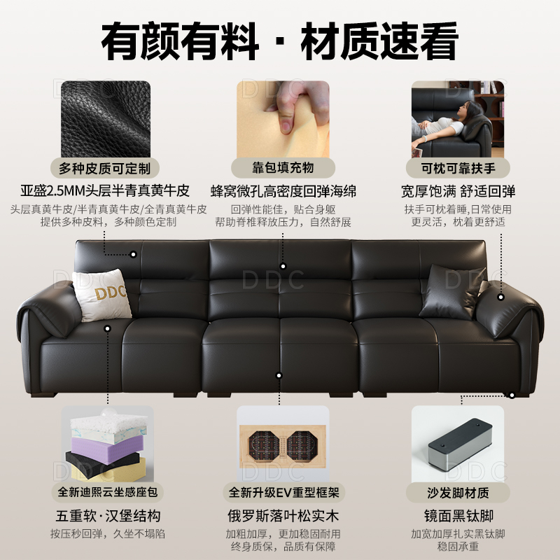 政府补贴DDC意式极简黑色全青皮真皮沙发客厅大象耳朵沙发新款