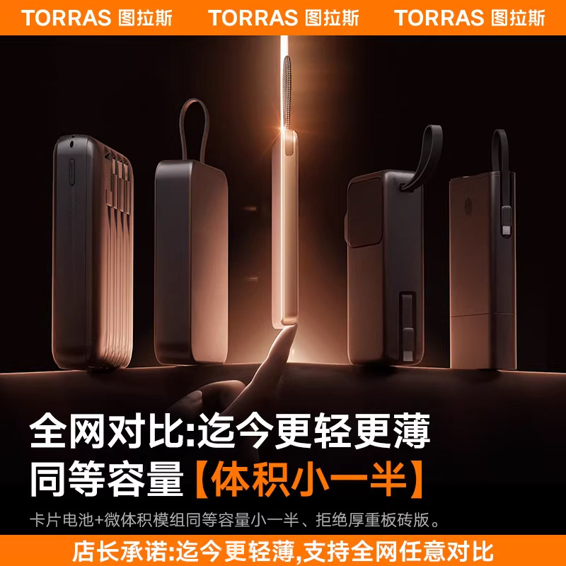 图拉斯自带双线充电宝3C认证可上飞机20000毫安磁吸2026新款适用苹果17超薄小巧便携快充移动电源官方大容量