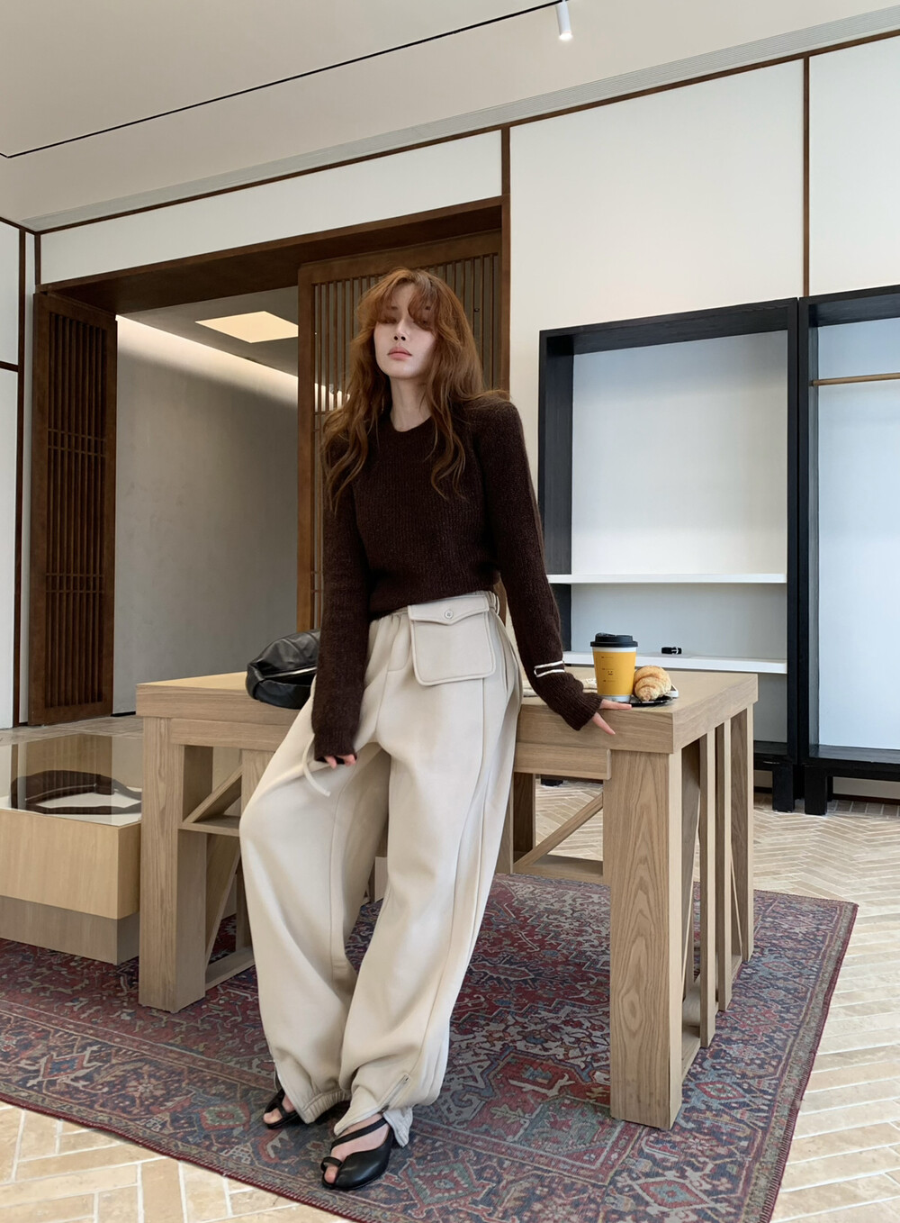 2025冬季新款ALLIN正品韩版腰包宽松加绒加厚休闲裤卫裤长裤子女
