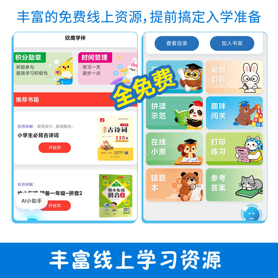 欣鹰幼小衔接教材全套一日一练线上软件网站幼儿园预备一年级拼音识字启蒙书学前班幼升小大班拼读专项训练