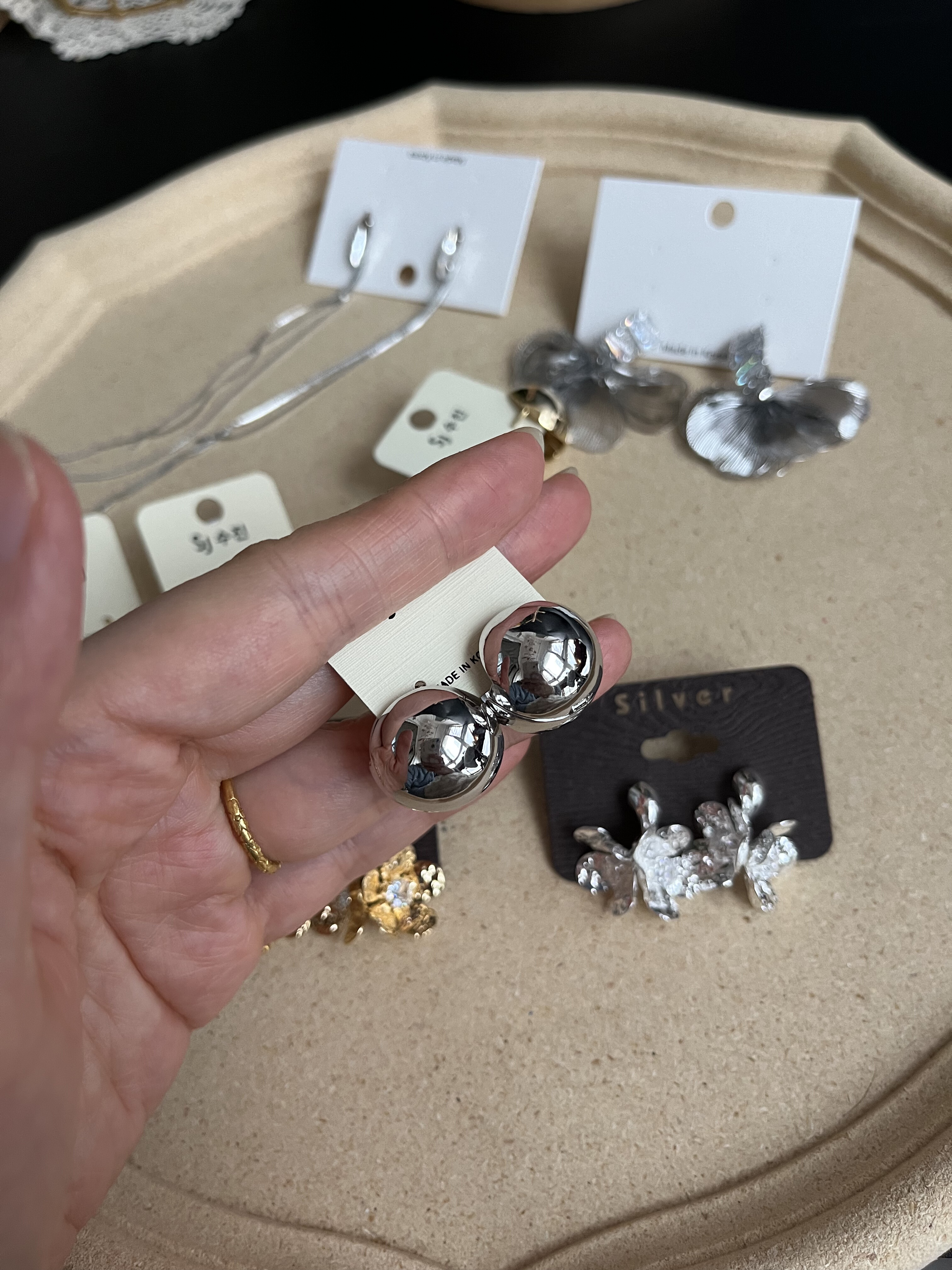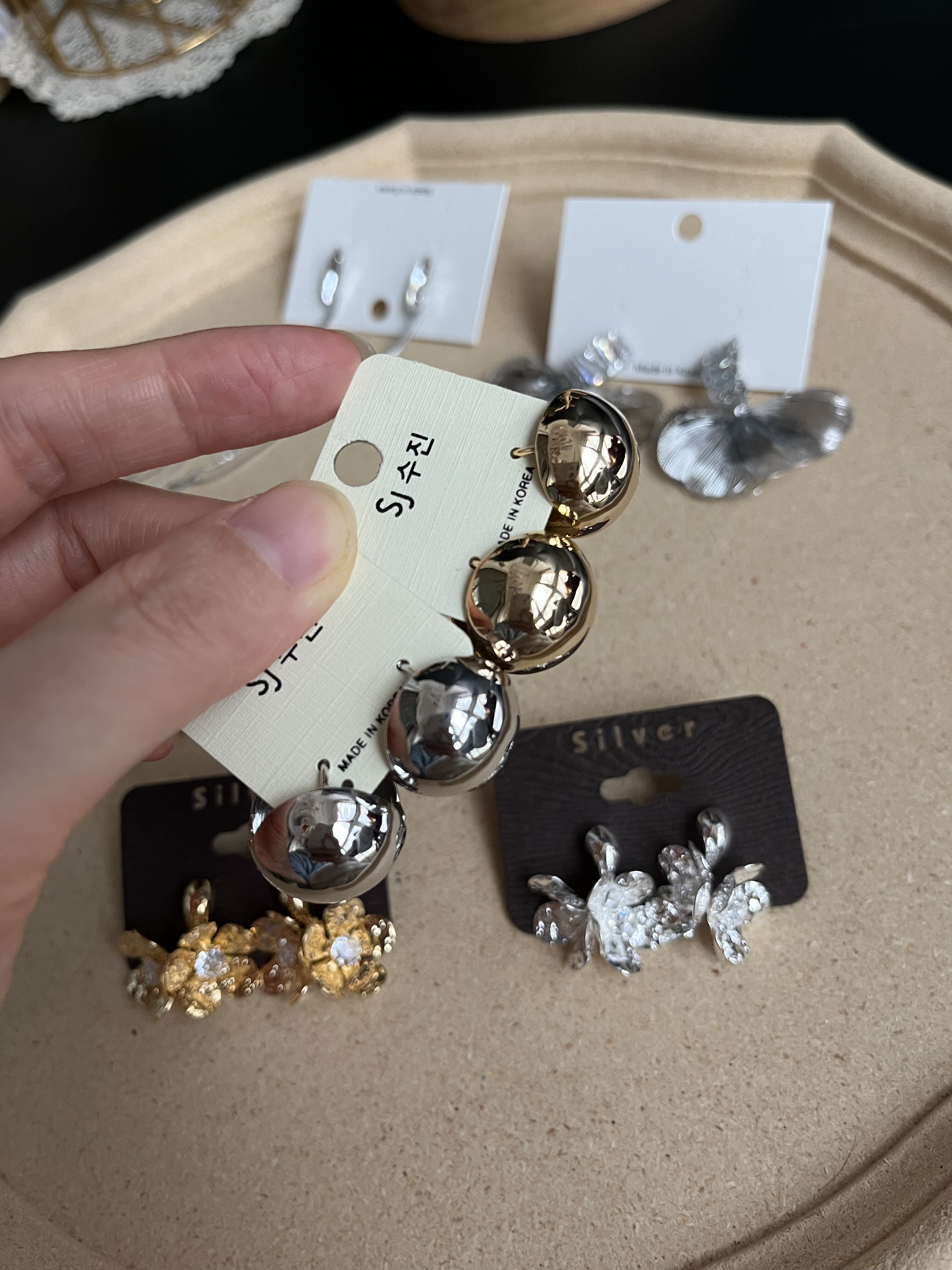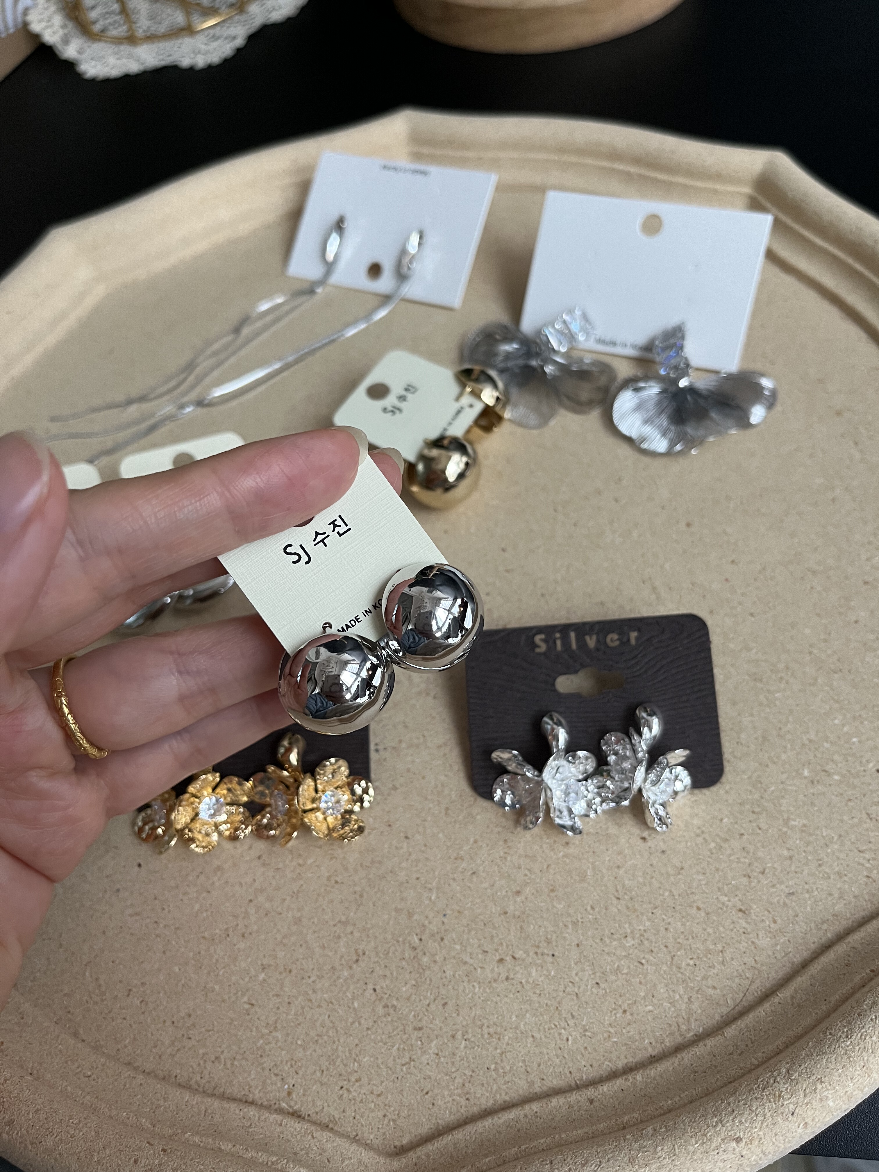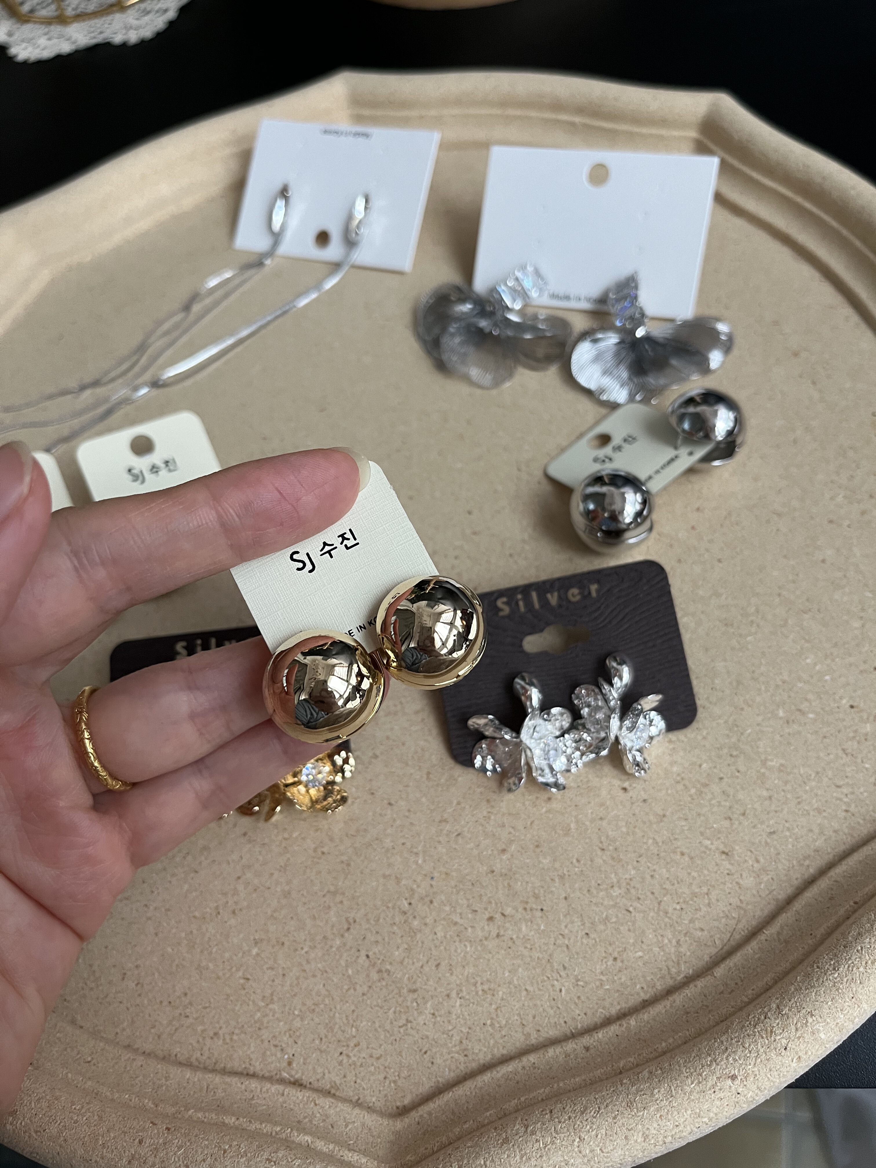 韩国进口Sj新款气质简约高级感金属豆豆耳钉女耳环耳饰