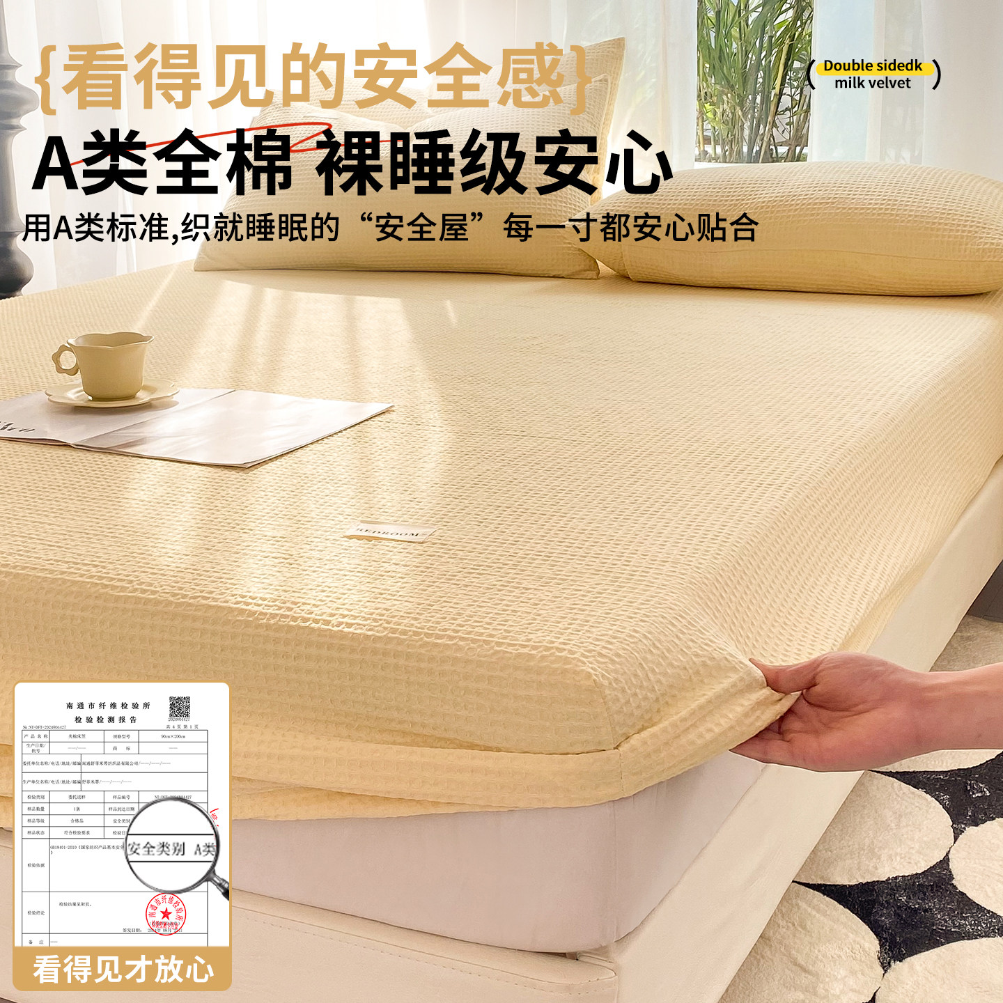 A类全棉华夫格纯棉床笠单件床垫保护罩隔脏防尘全包床单四季通用