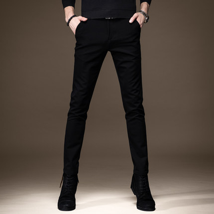 法国高端纯黑色牛仔裤男士春秋季2025新款修身小脚百搭休闲裤子