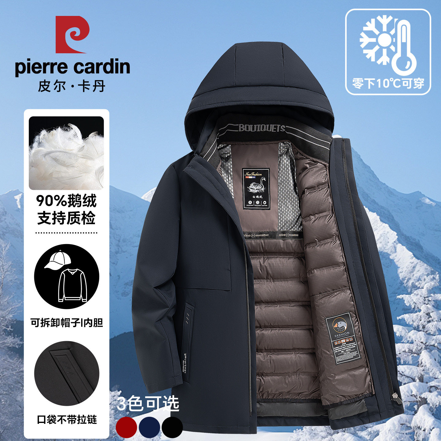 皮尔卡丹中老年羽绒服男爸爸冬季新款可拆卸内胆加厚保暖鹅绒外套