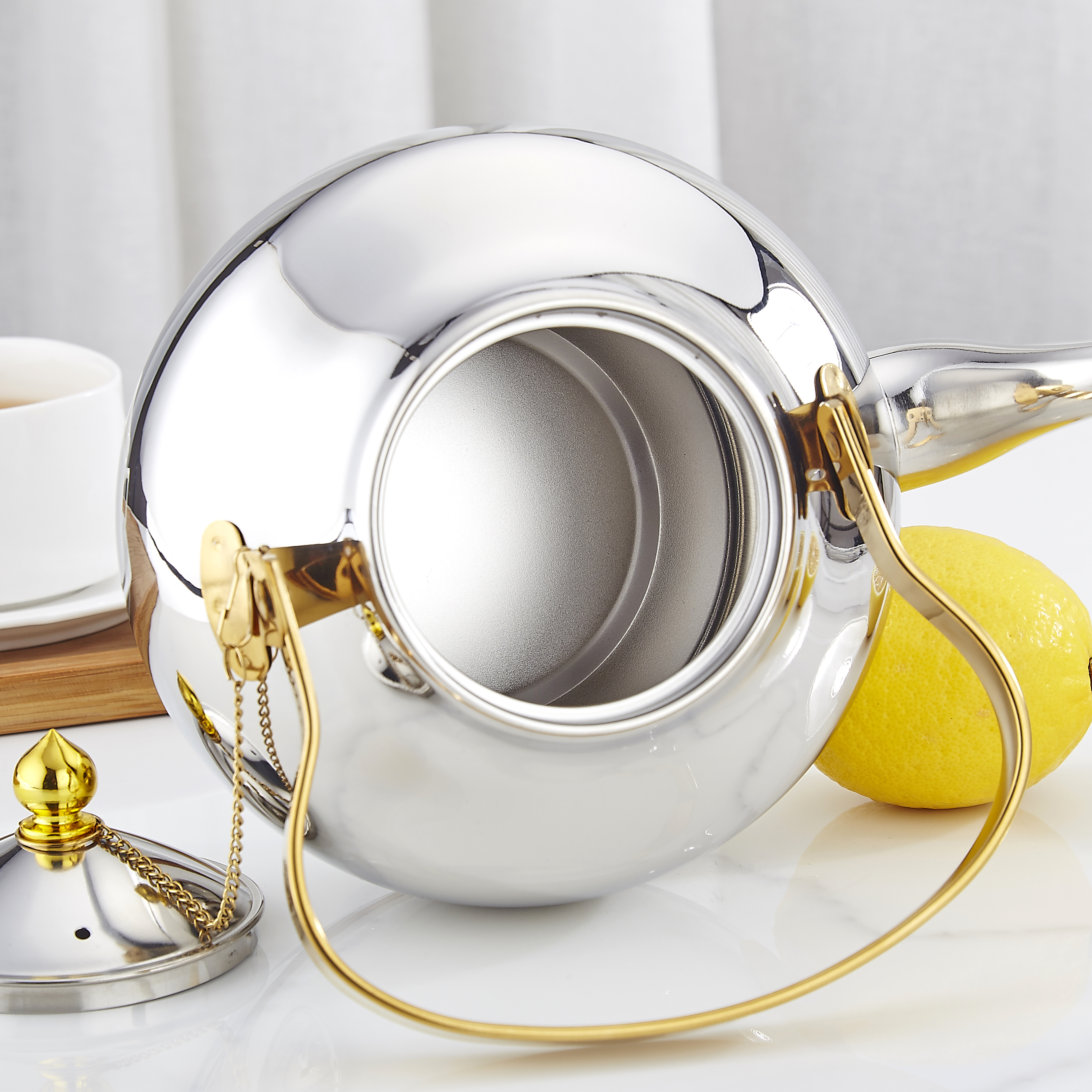 加厚不锈钢提梁壶金色柄茶壶家用烧水壶餐饮商用加汤壶电磁炉适用