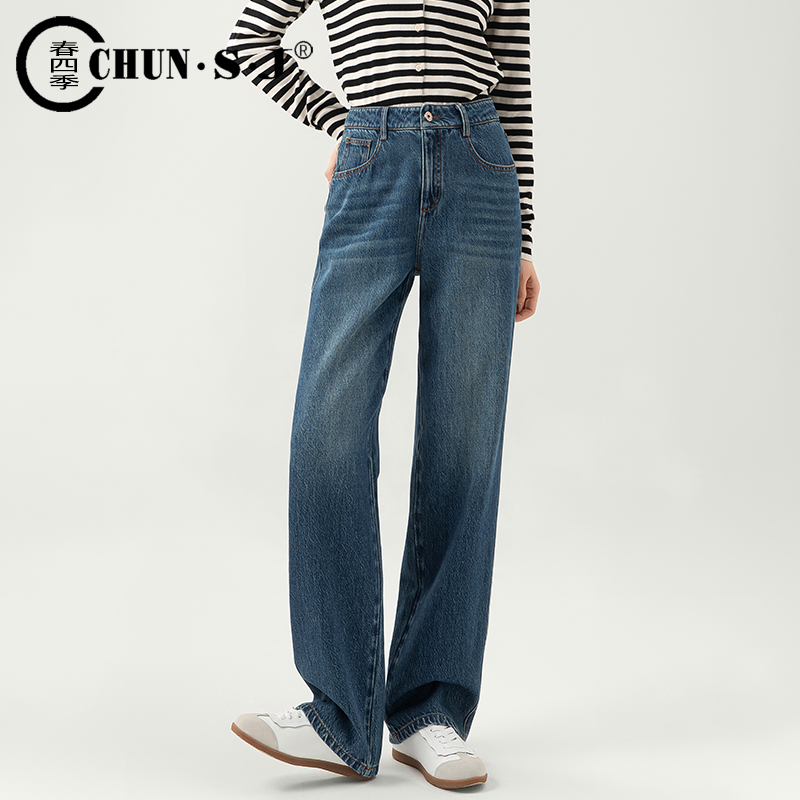 天丝棉牛仔阔腿裤垂坠裤子2025年新款秋季宽松窄版直筒女裤拖地裤