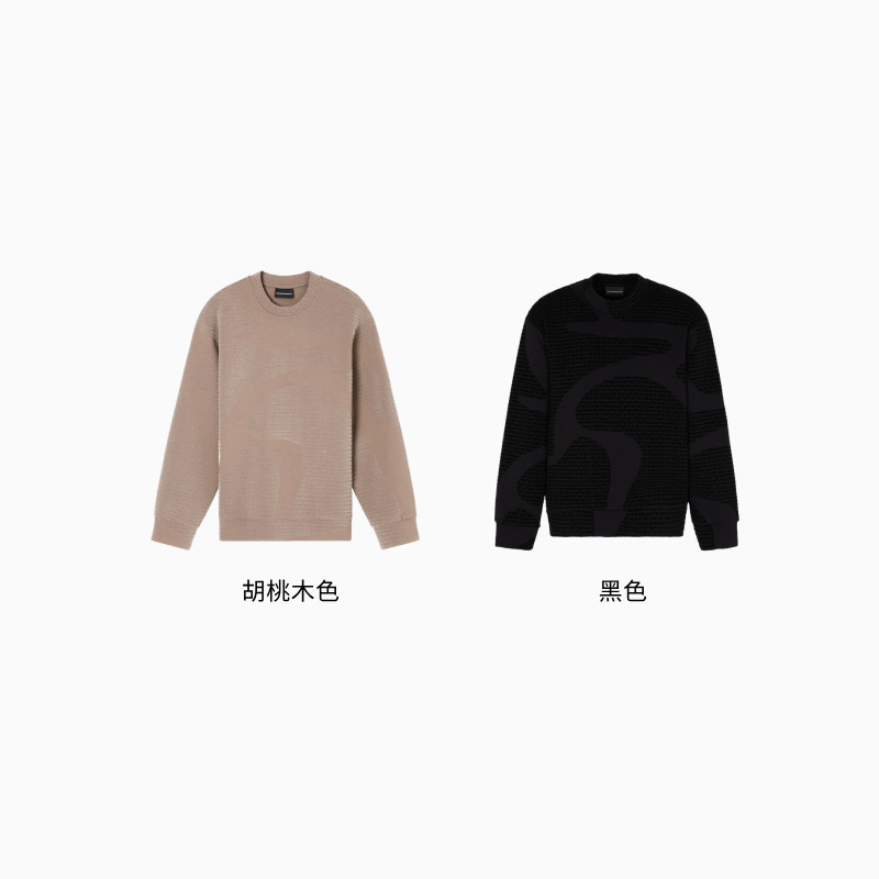 阿玛尼男士棉质圆领重磅老花卫衣