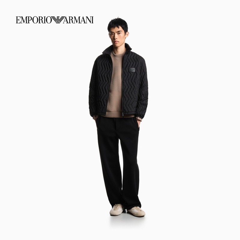 EMPORIO ARMANI/阿玛尼冬季新款男宽松套头圆领植绒印花运动卫衣
