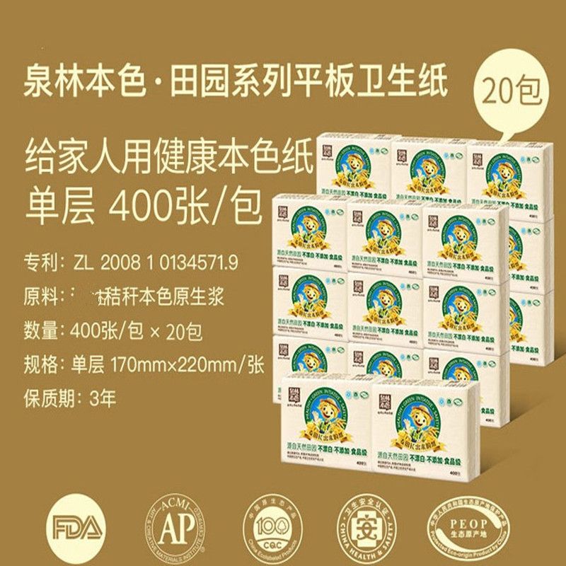 泉林本色400张平板纸厕纸卫生纸方块纸10包整箱批官方旗舰店