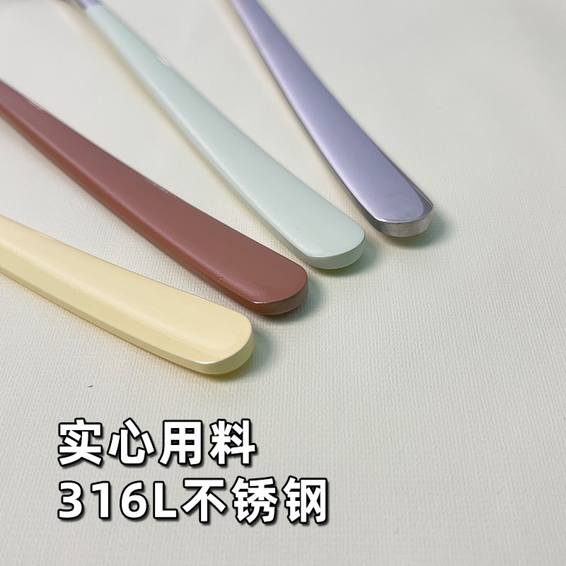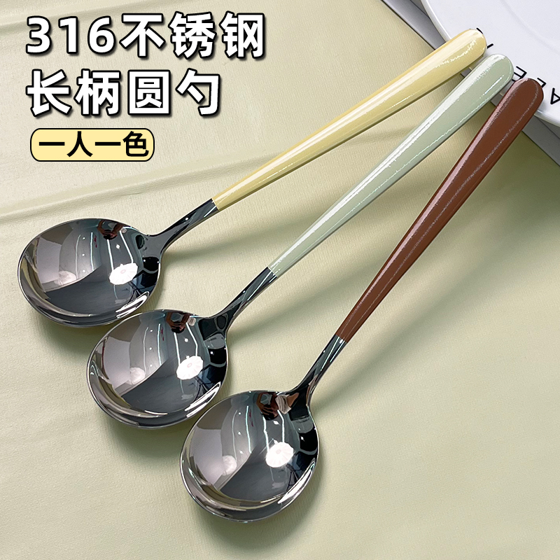 316不锈钢勺子家用可爱加厚喝汤勺长柄汤匙个人T专用高颜值奶油风