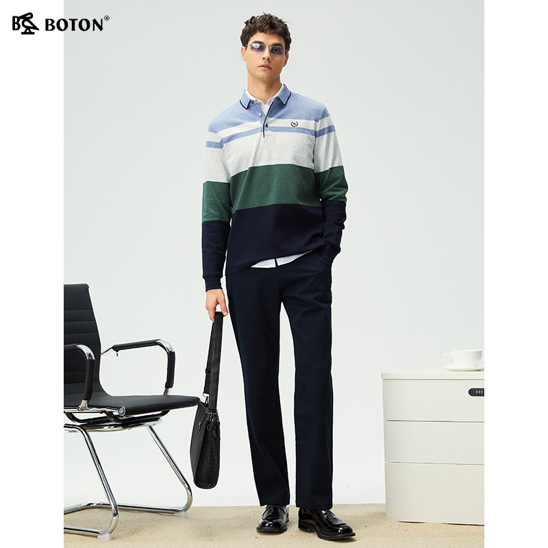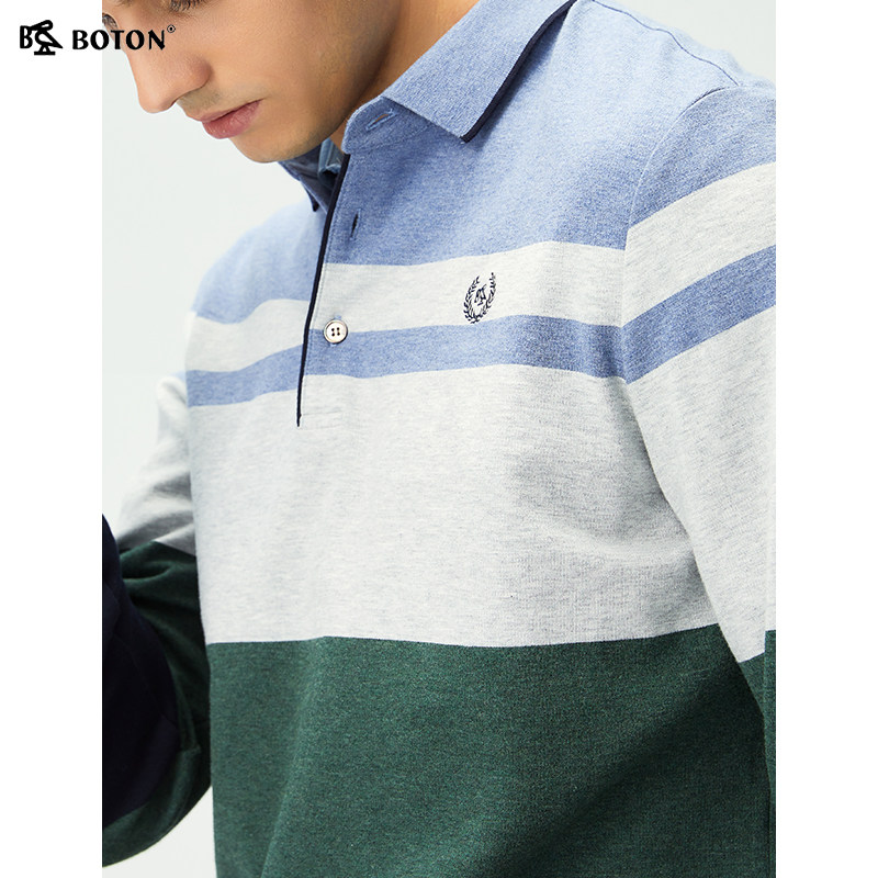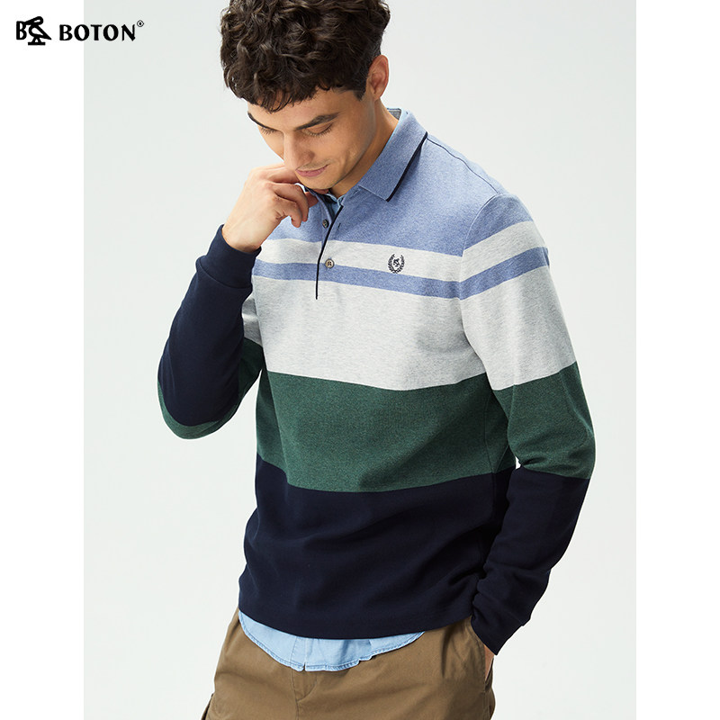 波顿秋冬新款商务翻领长袖Polo衫男士时尚通勤休闲上衣高端T恤新
