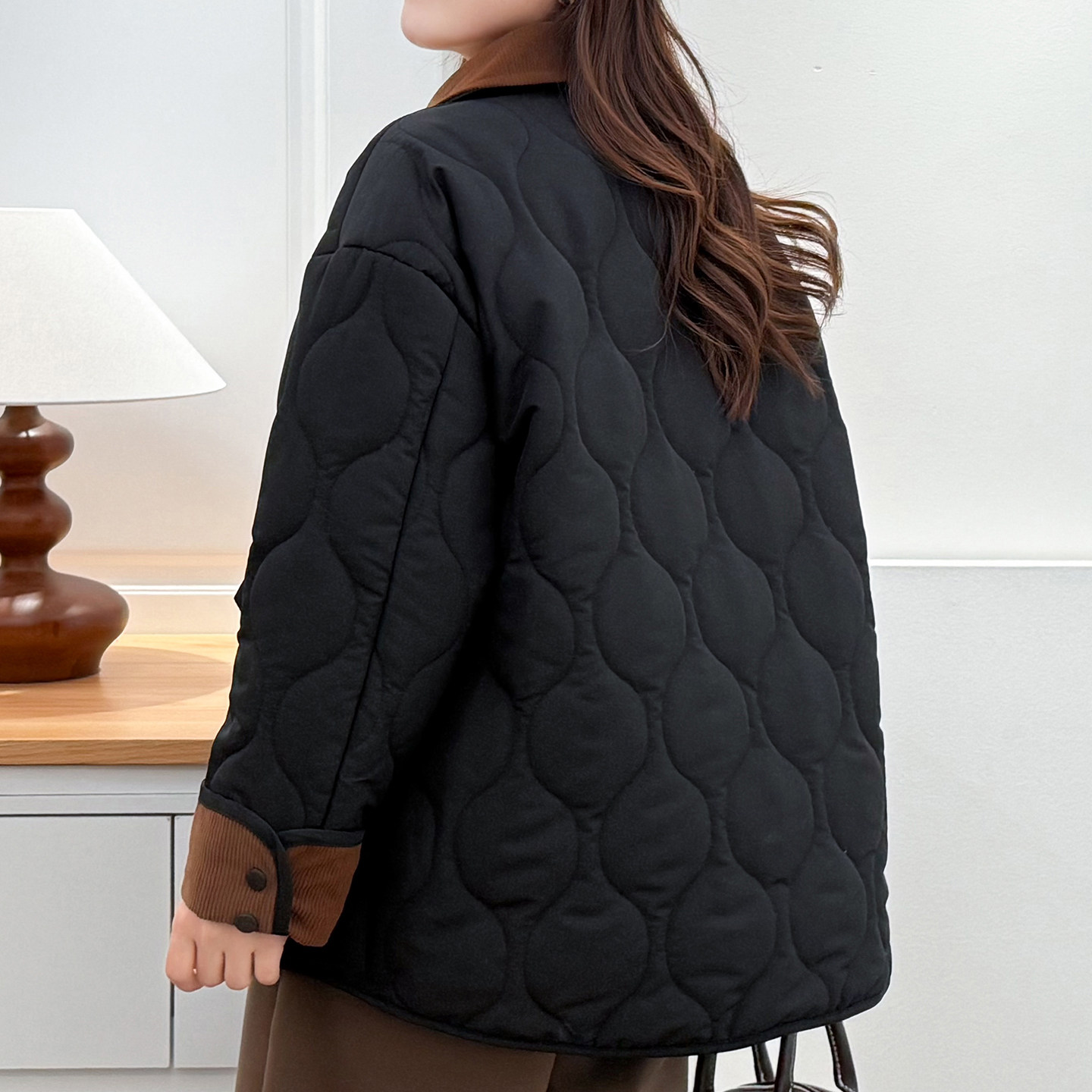 2025秋冬不臃肿棉衣胖mm翻领灯芯绒拼接外套洋气大码百搭休闲棉服