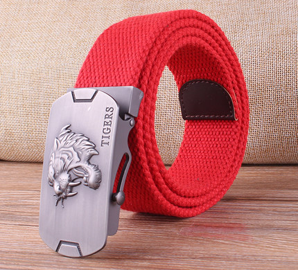 男士帆布腰带青年休闲皮带加长皮带 红腰带男滚轴个性霸气裤腰带