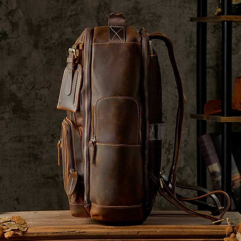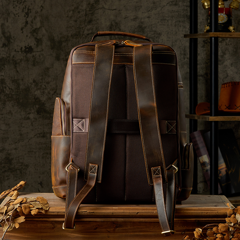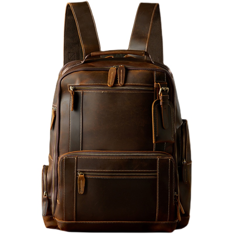 手工牛皮双肩包男士英伦风复古旅行背包疯马皮欧美电脑男包机车包