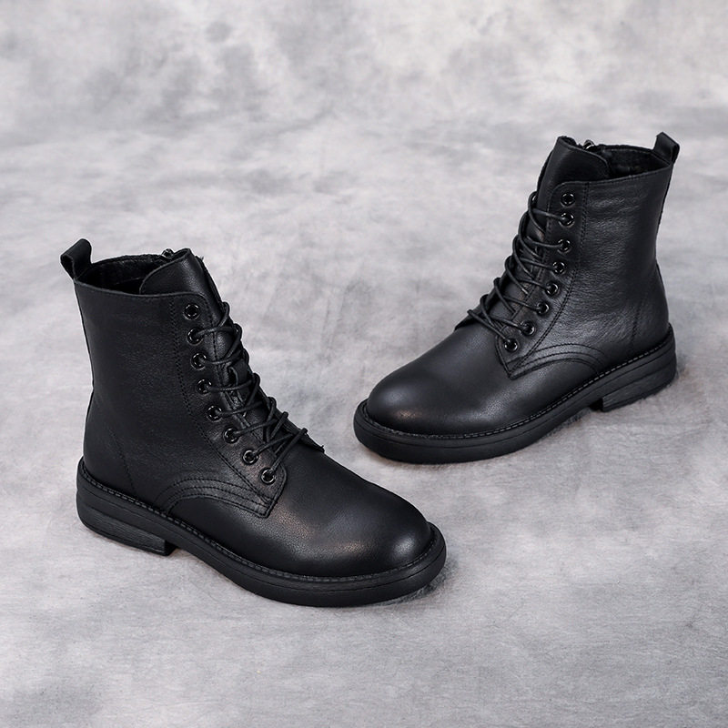头层牛皮~高端女鞋~马丁靴英伦风秋冬单靴侧拉链平底百搭真皮短靴