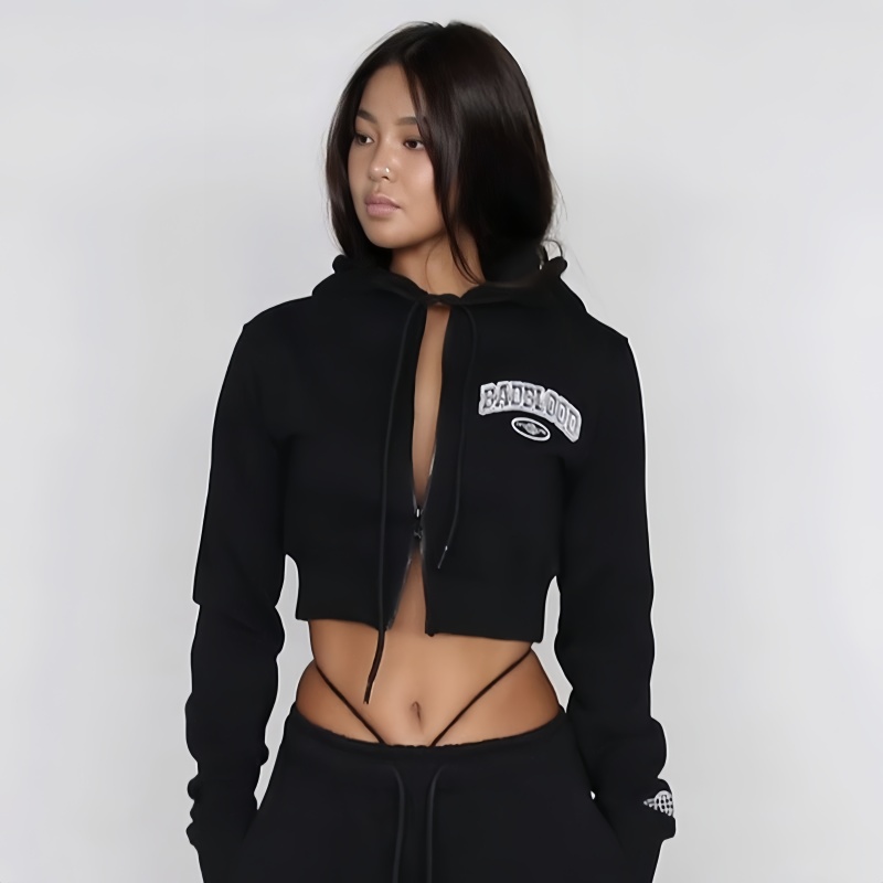 2025运动卫衣女长袖短款连帽美式辣妹外套拉链开衫休闲小众性感新