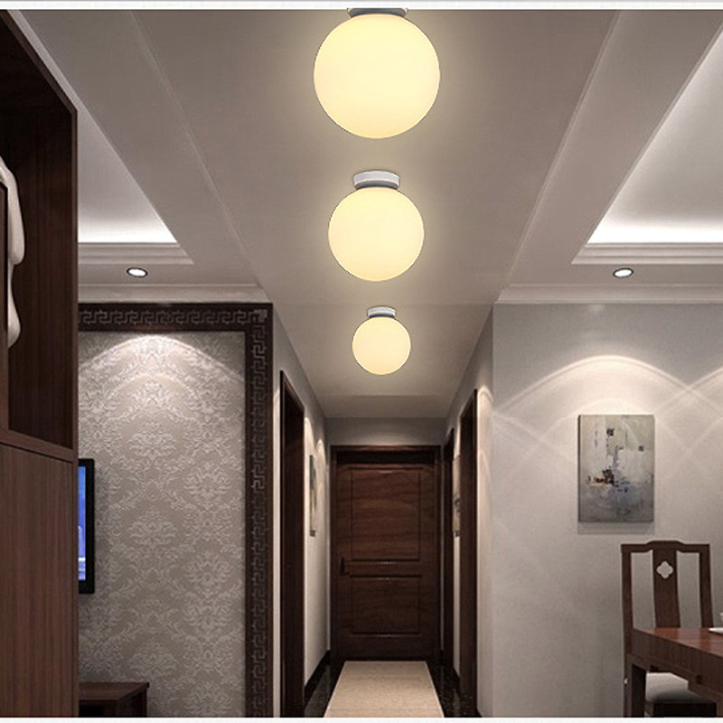 北欧白色玻璃圆球形阳台卫生间吸顶灯饰极简现代玄关门厅走廊过道