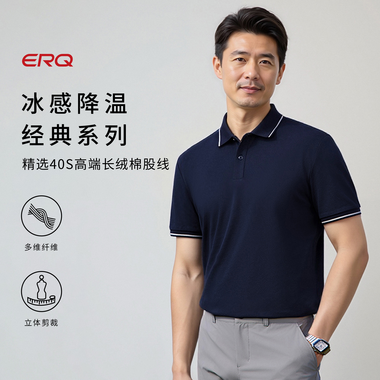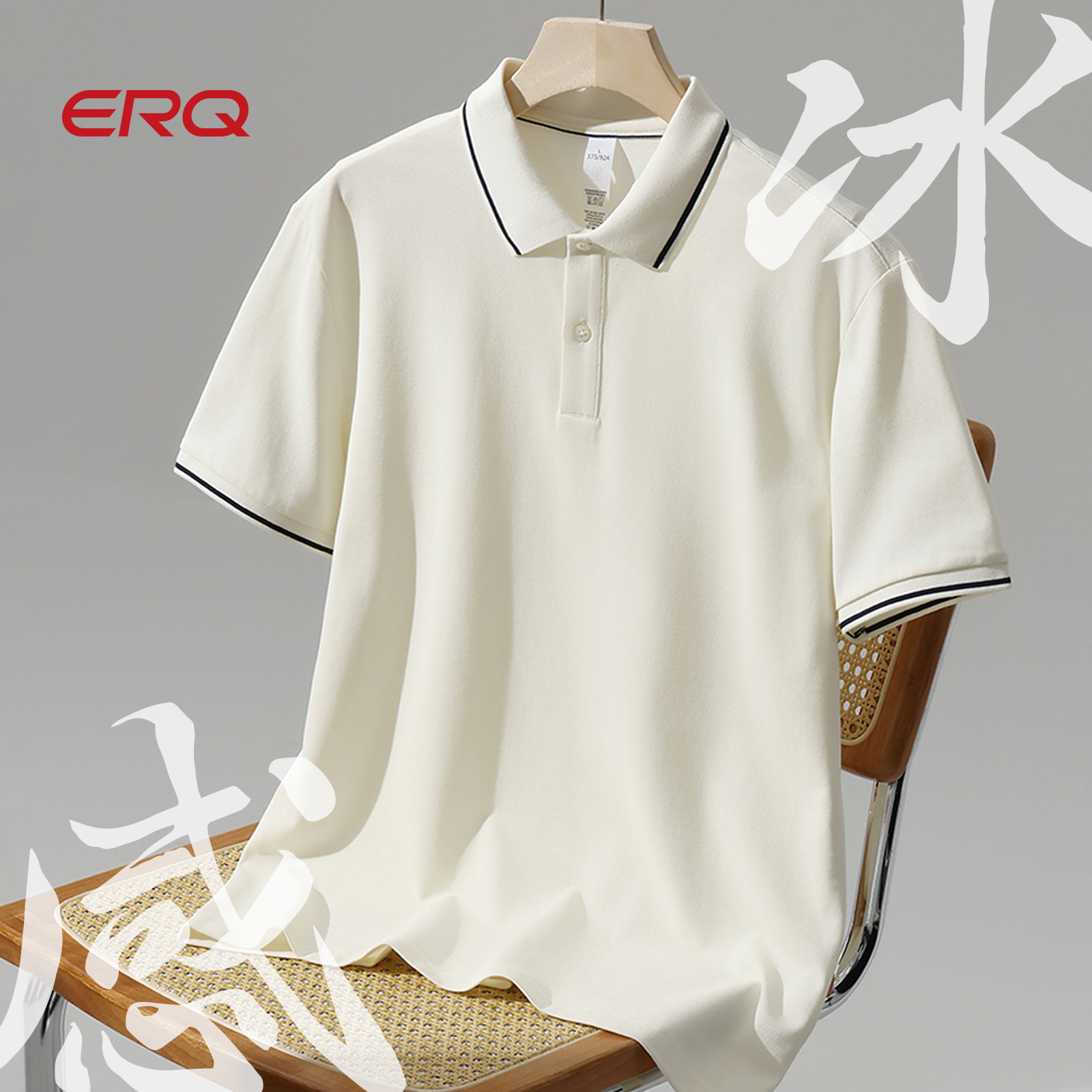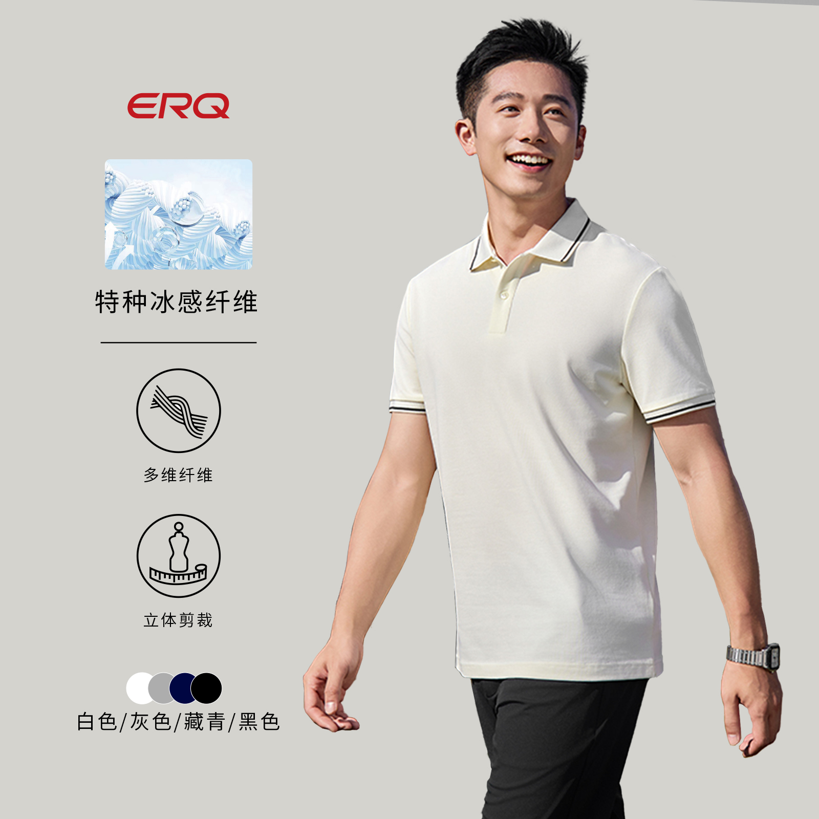 ERQ男士夏季休闲商务POLO衫翻领T恤宽松透气纯色男凉感冰丝短袖