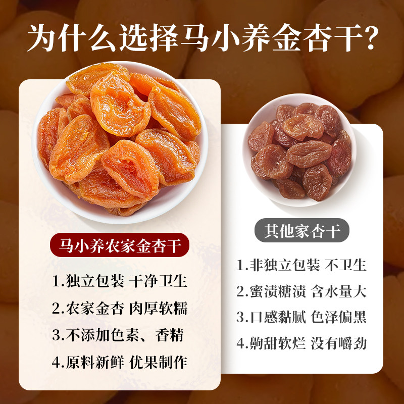 马小养金杏干无核红杏条倒蒸原果干酸甜杏脯非新疆蜜饯零食小吃
