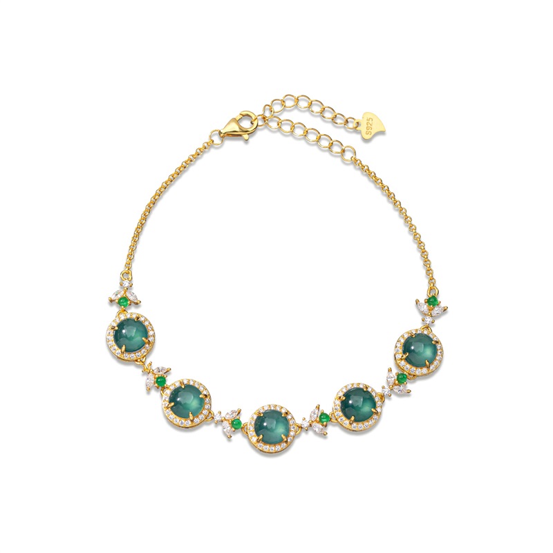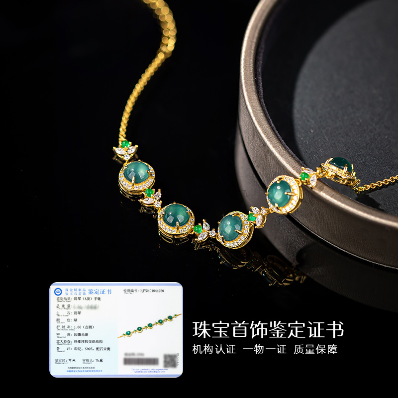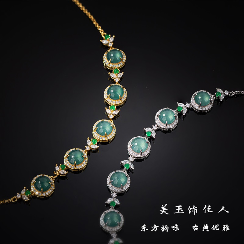 冰种翡翠蛋面银手链女款轻奢小众精致首饰母亲节礼物送妈妈礼品