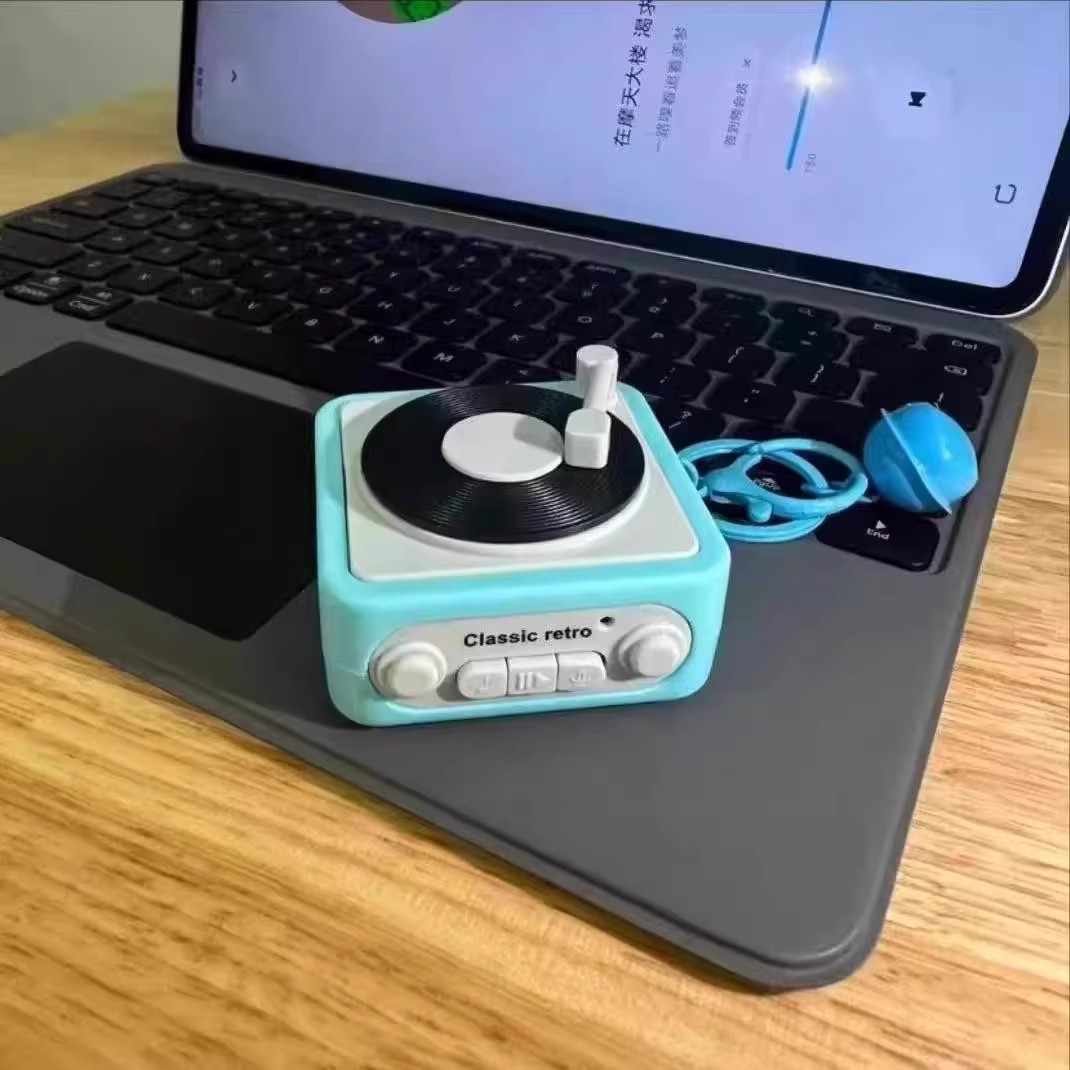 创意复古录音机钥匙挂件扣迷你黑胶唱片留声机可录音情侣礼物趣味