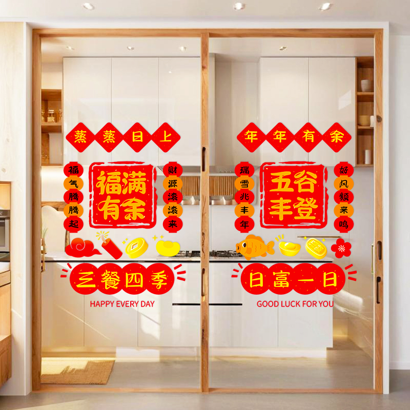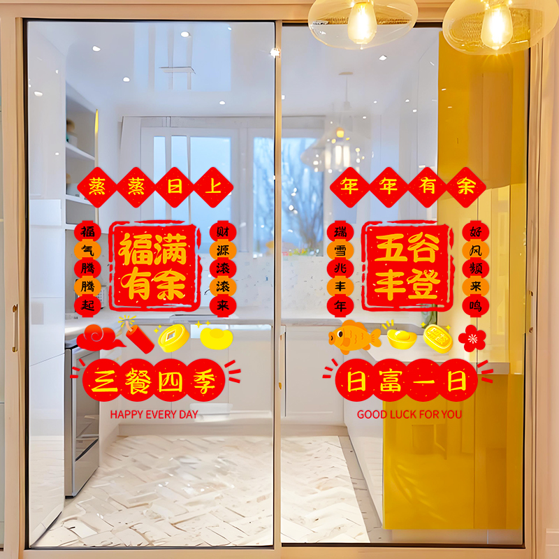 整张国潮风静电贴马年新春新年元旦春节玻璃推拉门窗贴纸氛围布置