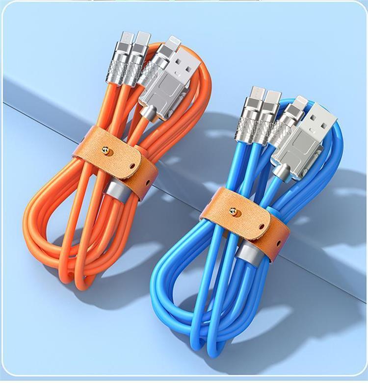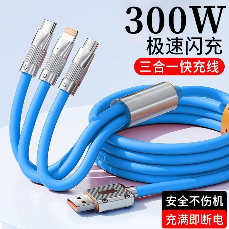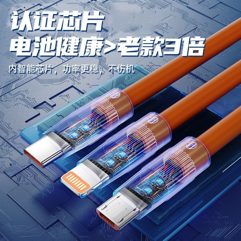三合一拖三闪充数据线适用苹果华为小米安卓车载手机通用快充电长
