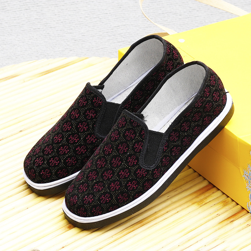 春季新款老北京布鞋松紧口一脚蹬黑胶底中老年奶奶单鞋女鞋千层底