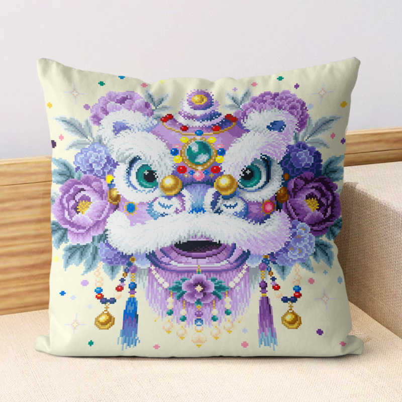 十字绣抱枕三面开口枕套2025新款线绣喜狮纳福客厅卧室手工刺绣