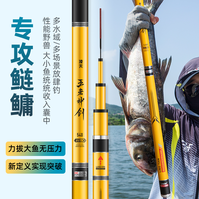 名伦旗舰凌天王者神剑钓鱼竿手竿超轻超硬碳素大物杆台钓竿19调6H