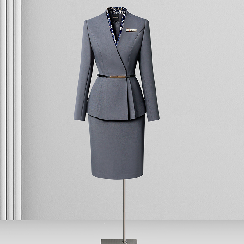 灰色高端职业套装女收腰西装制服酒店前台工装售楼处珠宝店工作服