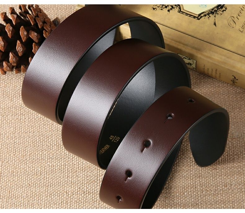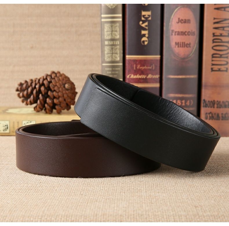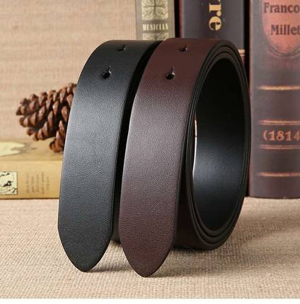 进口植鞣头层牛皮皮带真皮不带头男针扣无头腰带无扣平滑扣带身