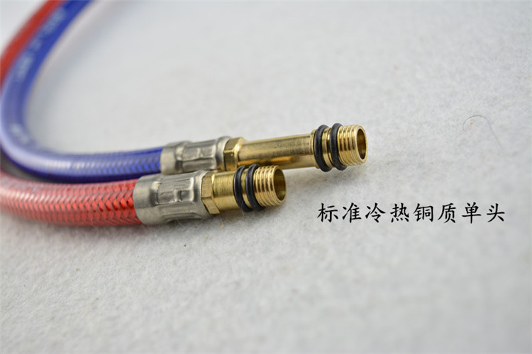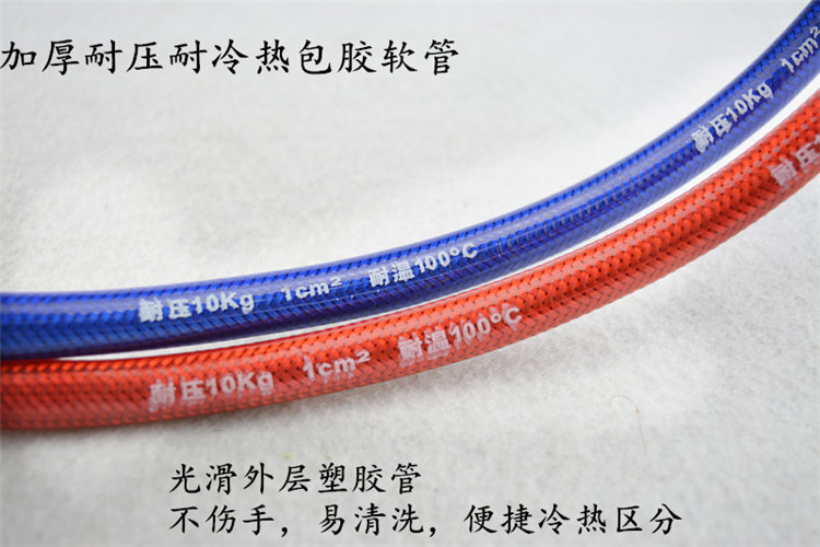 开福来面盆厨房冷热龙头4分加长不锈钢单头冷热红蓝包胶进水软管