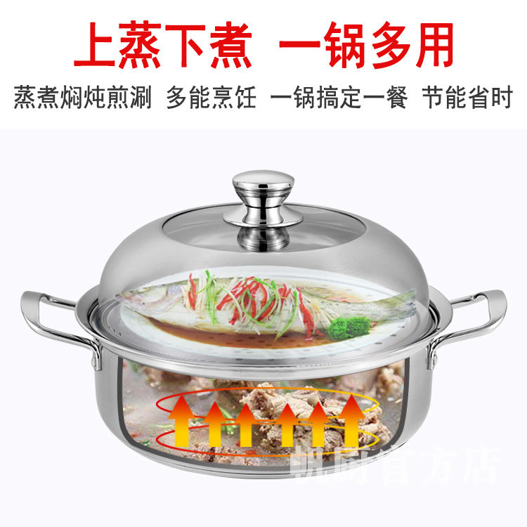 德国304不锈钢单层蒸锅1层加厚汤锅家用火锅蒸煮两用锅28/30/32cm