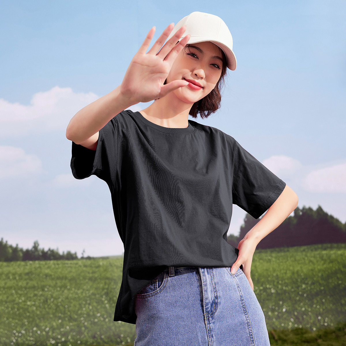 拓路者纯棉简约百搭T恤女夏款短袖上衣套头衫纯色无标净版打底衫