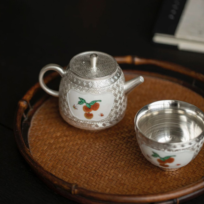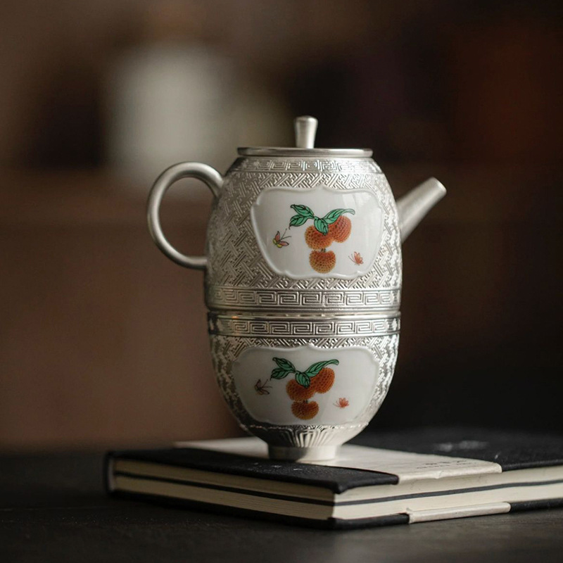 999纯银鎏银荔枝茶壶茶杯茶具套装一壶二杯送朋友送长辈伴手礼物