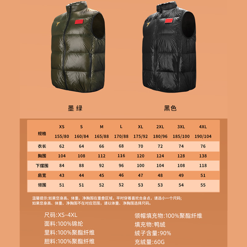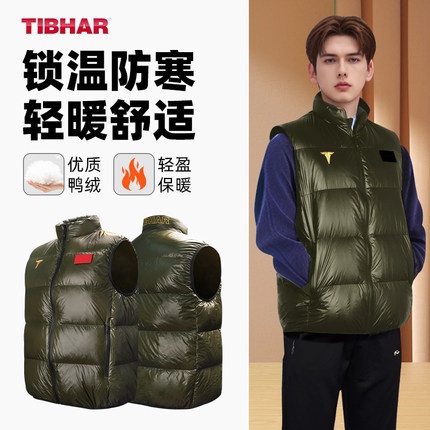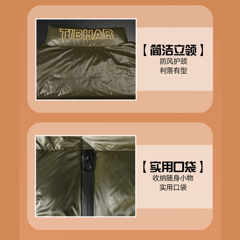 TIBHAR挺拔旗舰店乒乓球羽绒马甲正品秋冬新款轻薄羽绒服短款圆领