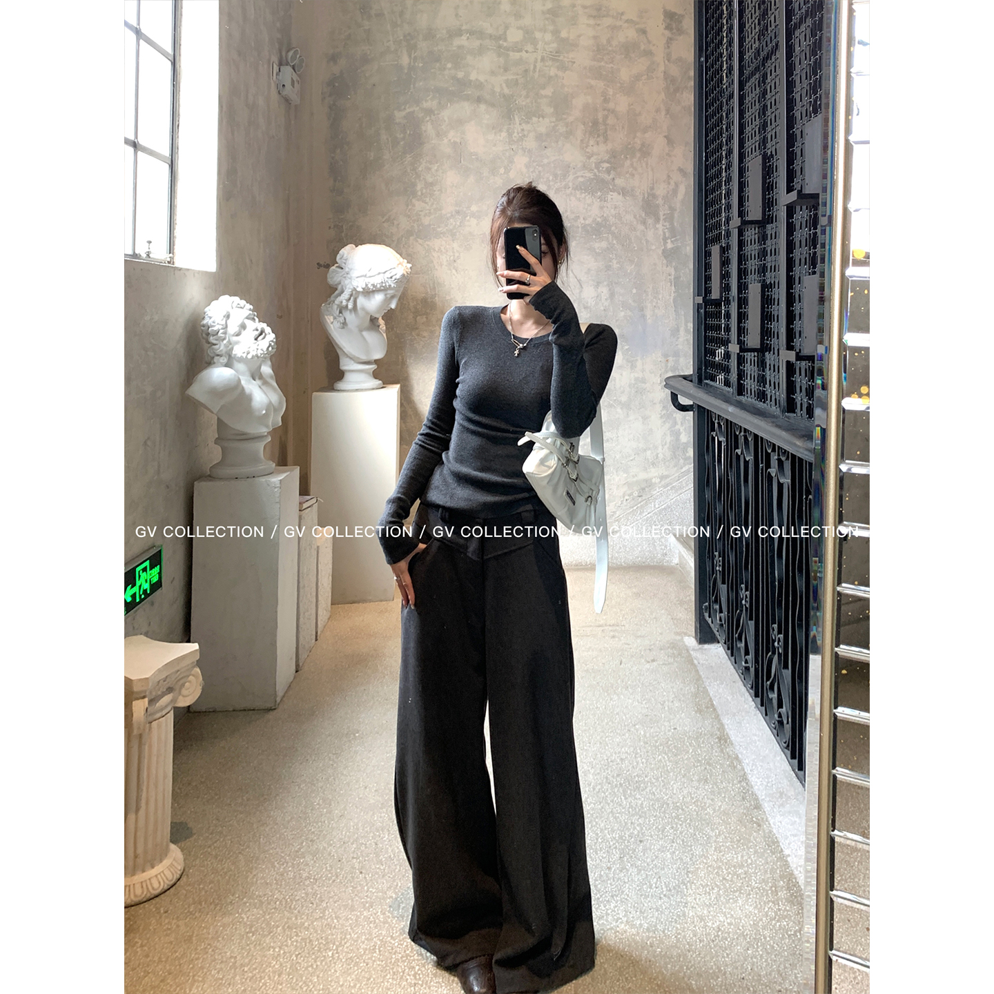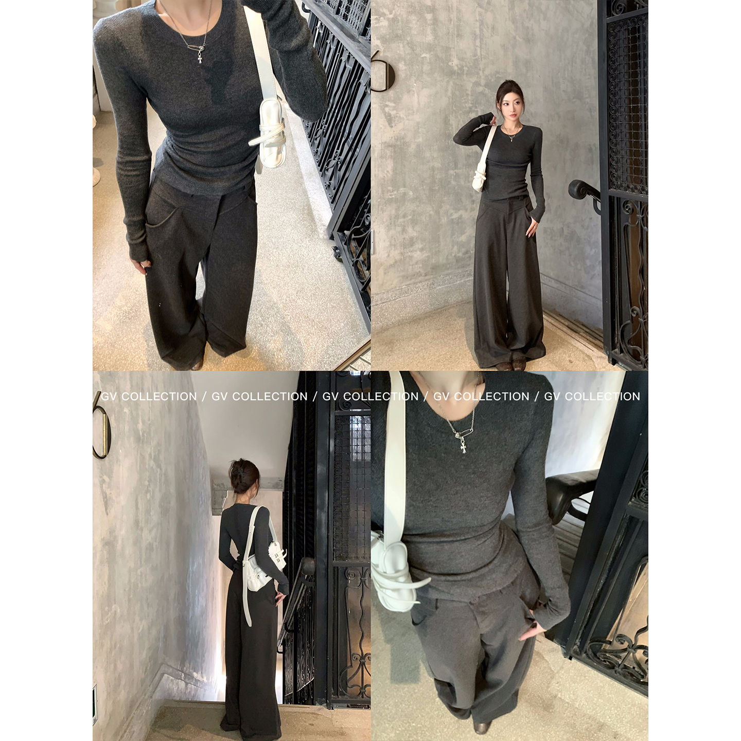 GV大白哥 基础好穿 圆领前后两穿美丽诺羊毛针织衫打底衫上衣外穿