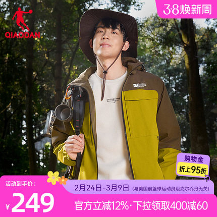 乔丹鲁道夫无氟防泼水内里抗静电宽松可拆卸帽男生风衣商场同款