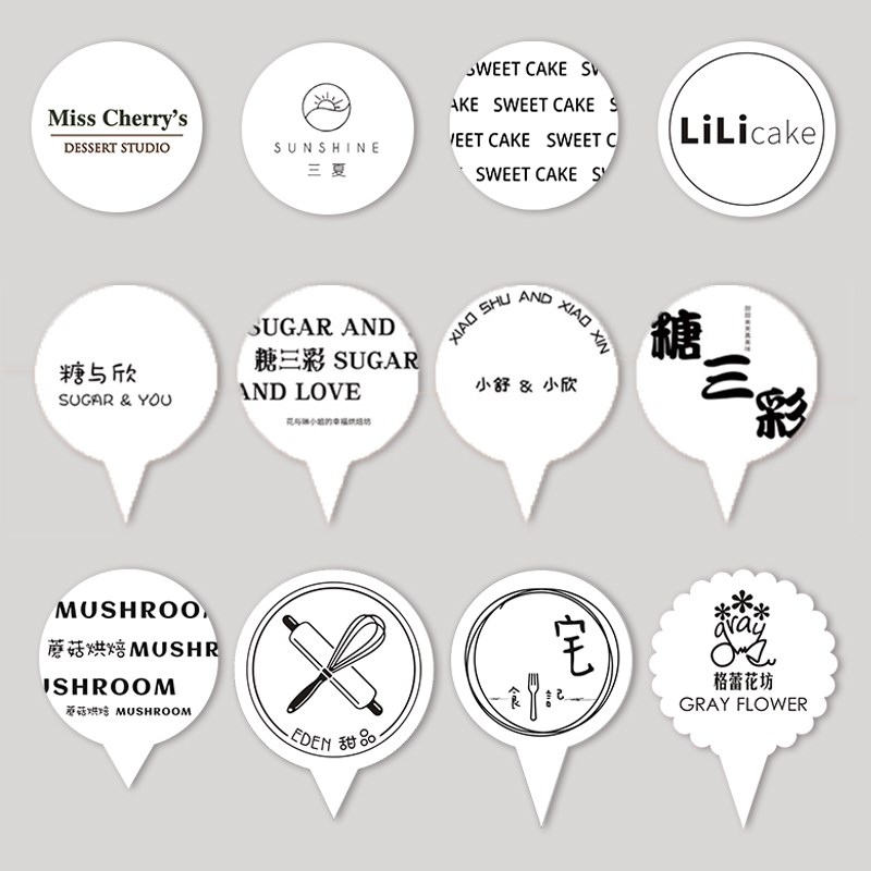 烘焙标签插牌定制甜品装饰logo插件提拉米苏纸杯T卡片生日蛋糕插