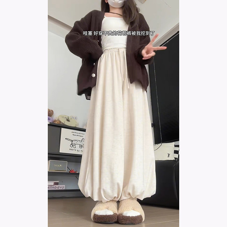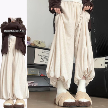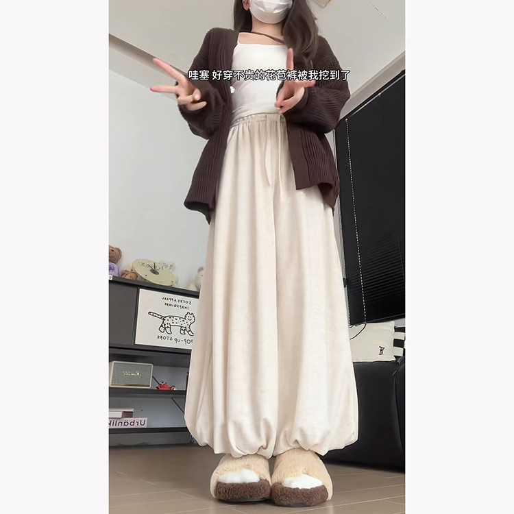 韩系慵懒感针织软糯高腰裙裤女秋冬2025新款梨形显瘦小个子花苞裤