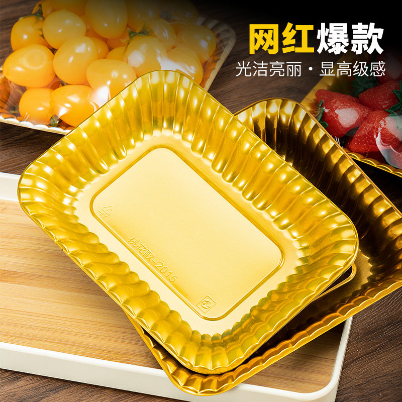 金色水果托盘一次性生鲜柚子车厘子葡萄外卖打包盒档次陈列包装盒