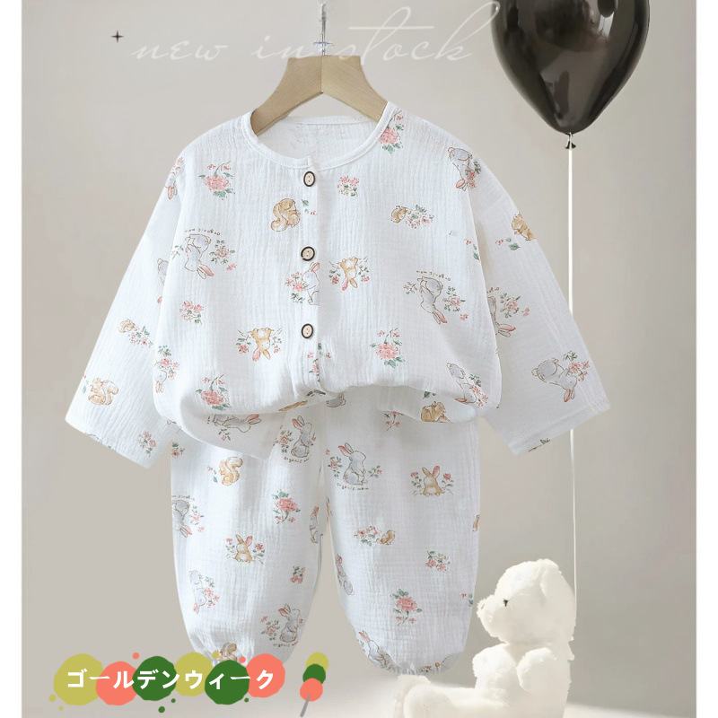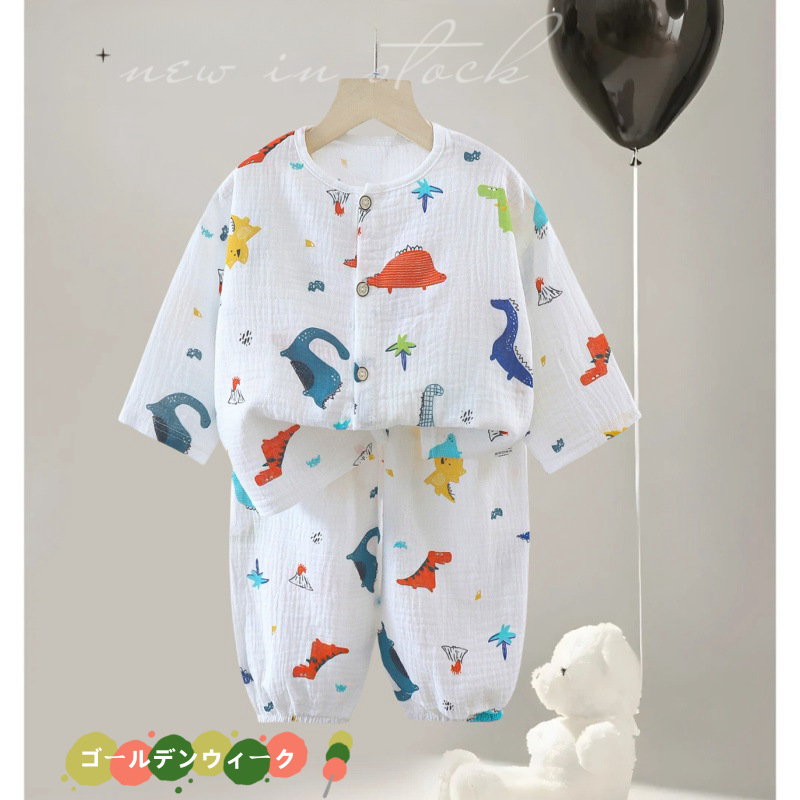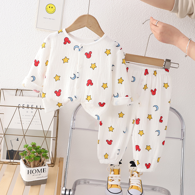 儿童双层棉纱睡衣套装小孩纯棉衣服帅气宝宝春夏家居服开衫两件套