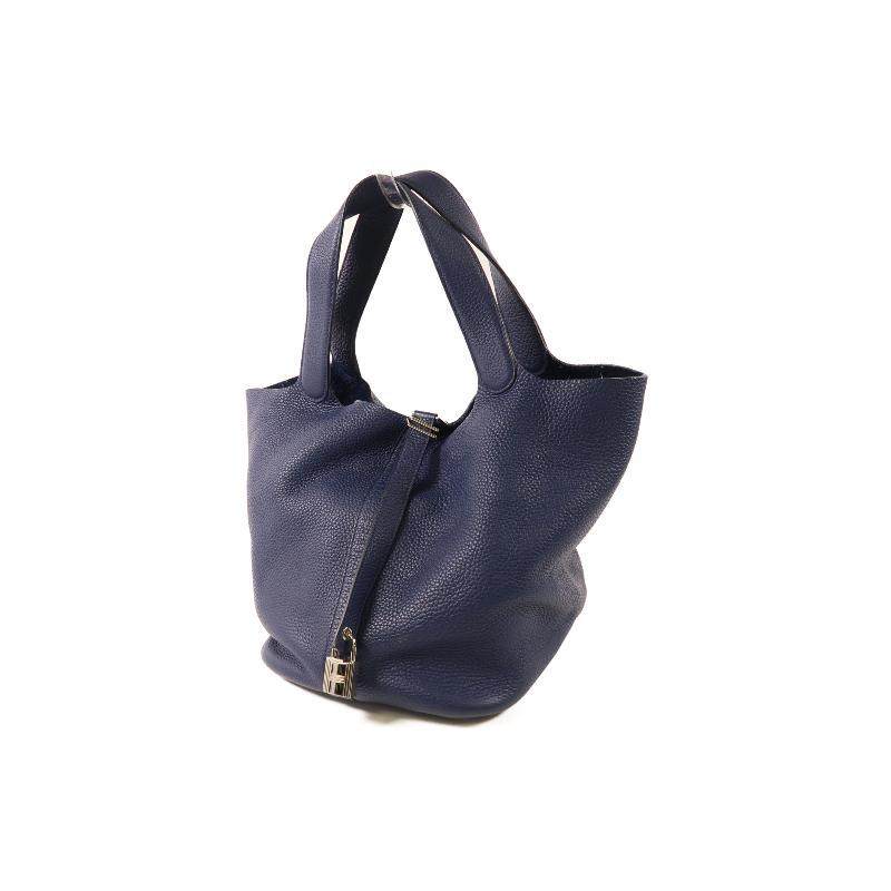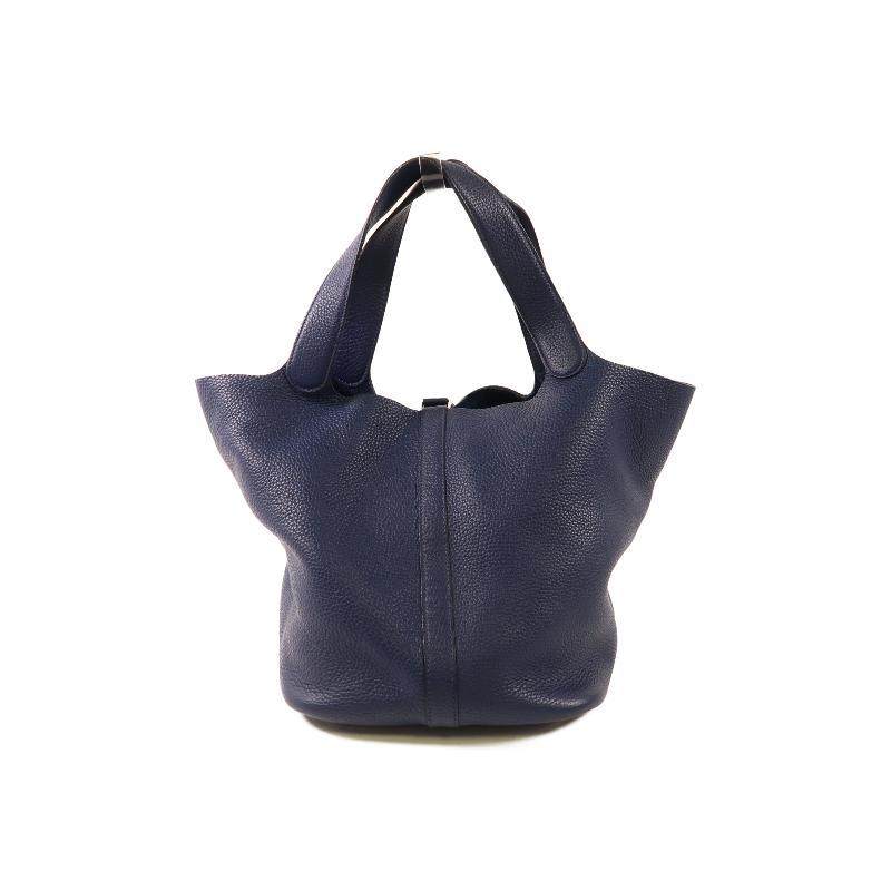 中古Hermes爱马仕女包A级95新handbag手提包牛皮手提包蓝HK正品