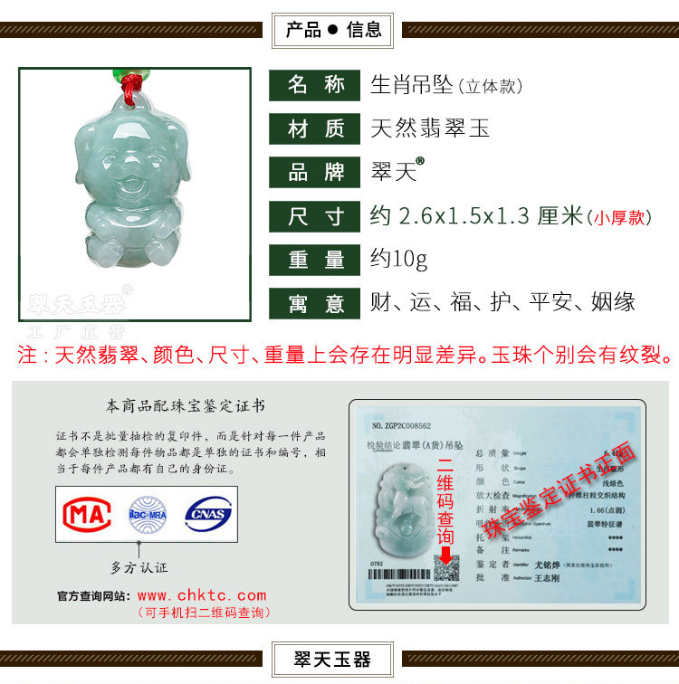 翡翠生肖猪天然吊坠属相项链