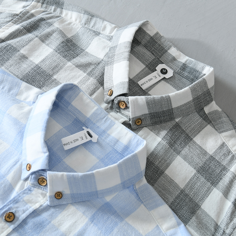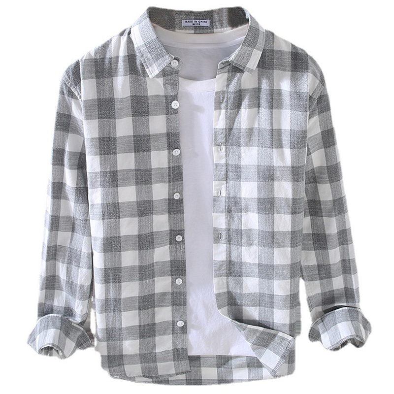 日系经典格子衬衫男长袖纯棉夏季薄款休闲宽松上衣男装复古衬衣潮