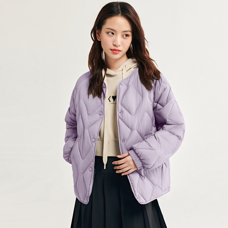 雪中飞热可可羽绒服秋冬新款女士时尚百搭菱形格休闲韩版V领外套