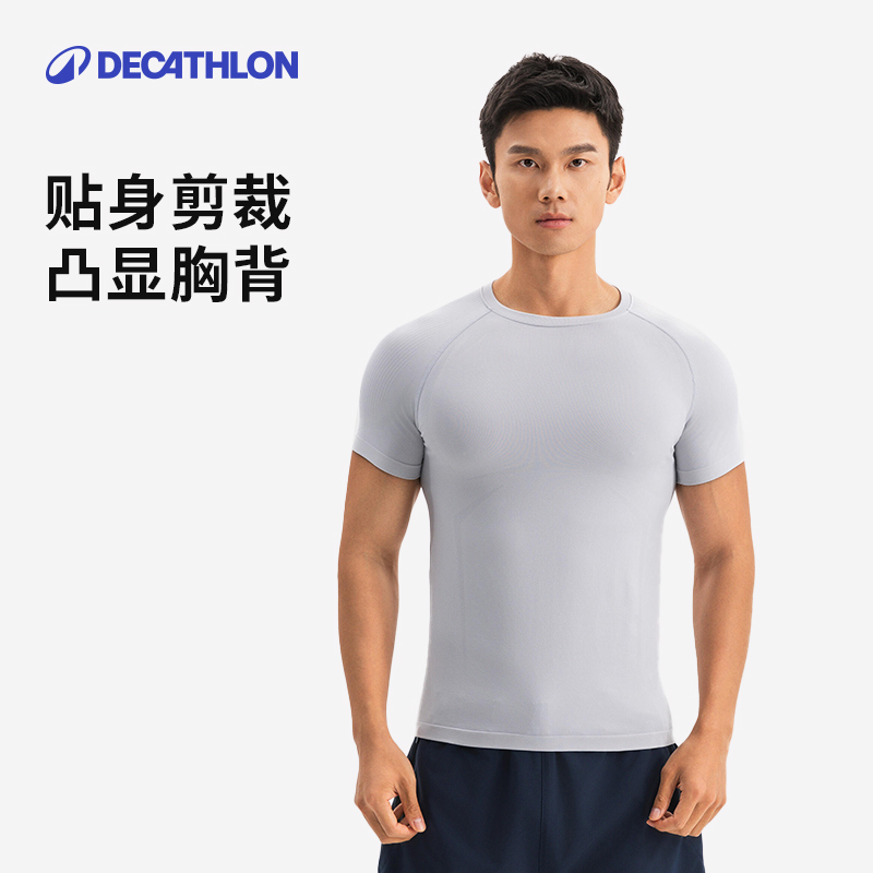 迪卡侬健身衣紧身衣男修身速干高弹运动上衣训练短袖360660SAT2