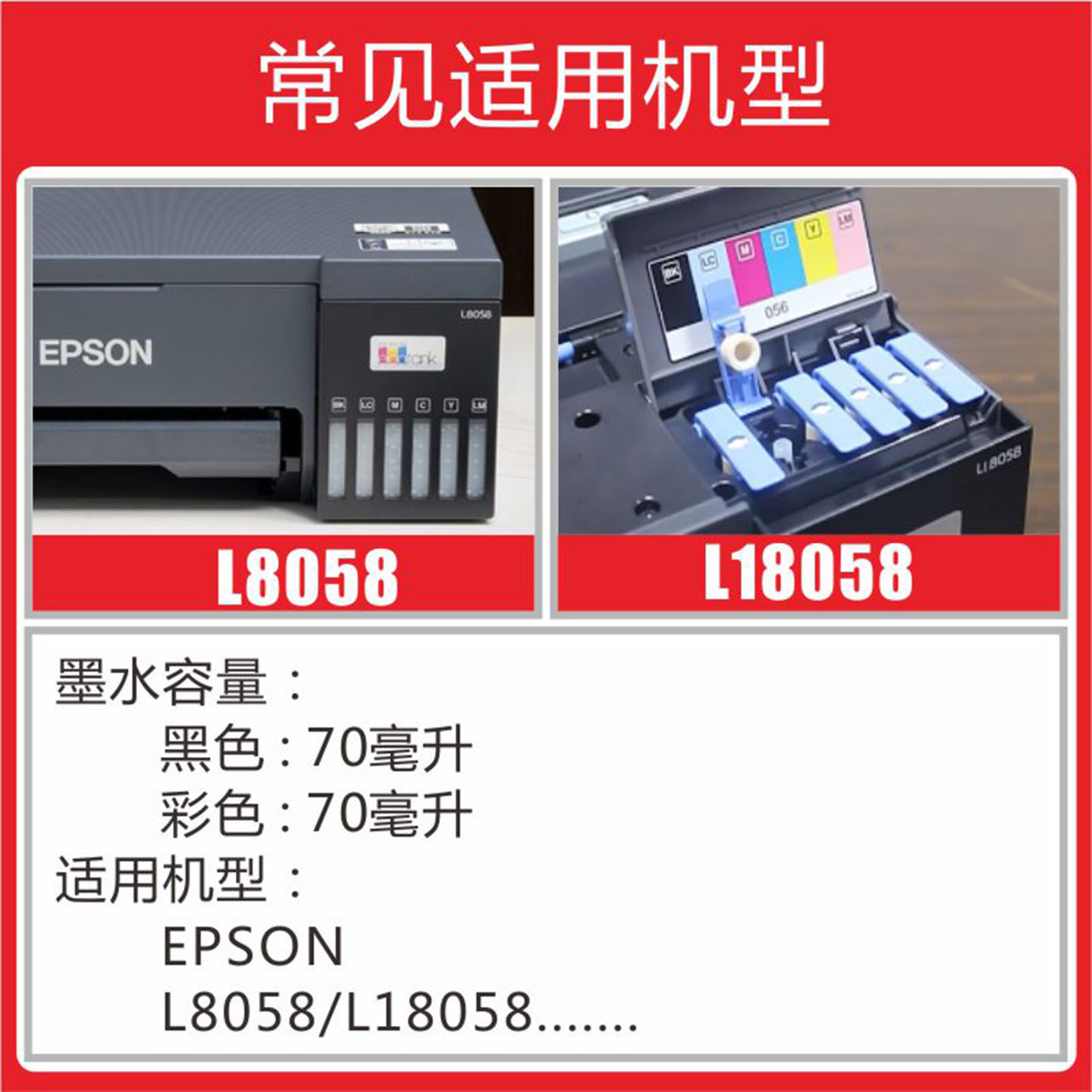 INKOOL适用爱普生056墨水非原装L8058 L18058打印机喷墨彩色6色墨汁 商用一体机056墨水墨仓式补充装连供墨水